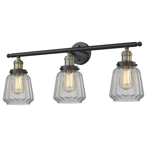 Innovations Lighting Chatham 3-100 Watt 30 Inch Black Antique Brass Bathroom Fixture With Clear Fluted Glass, 529221 205-BAB-G142