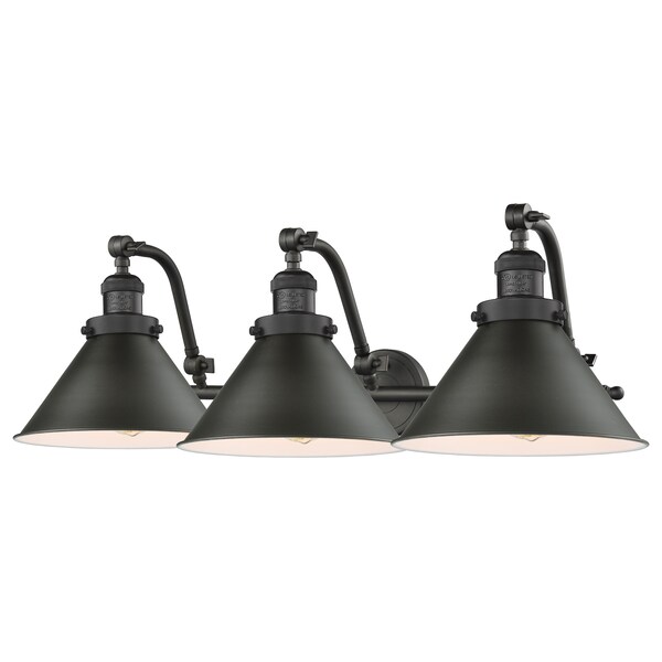 3 Light Adjustable Briarcliff 28In. Oiled Rubbed Bronze Bathroom Fixture With Metal Shade
