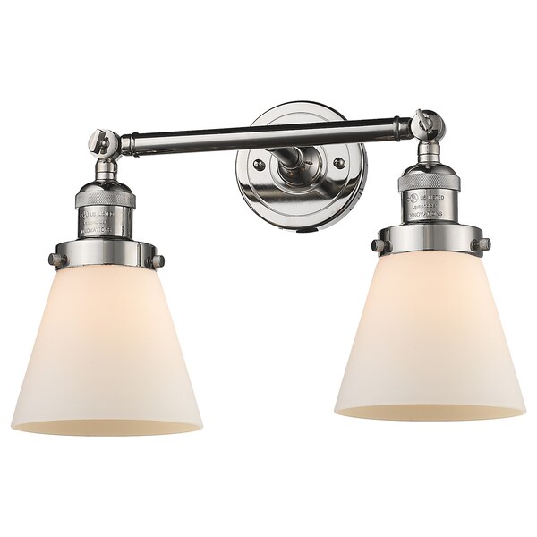 2 Light Adjustable Small Cone 16In. Polished Nickel Bathroom Fixture With Matte White Cased Glass
