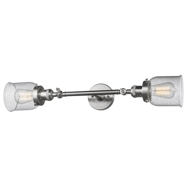2 Light Adjustable Small Bell 6In. Brushed Satin Nickel Wall Sconce With Seedy Glass