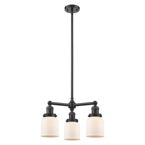3 Light Adjustable Small Bell 19In. Oiled Rubbed Bronze Chandelier With Matte White Cased Glass