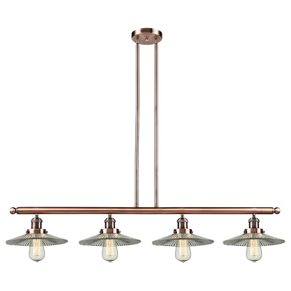 4 Light Halophane 48In. Antique Copper Island Light With Halophane Glass