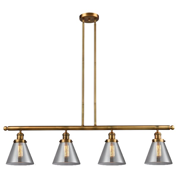 4 Light Large Cone 48In. Brushed Brass Island Light With Smoked Glass