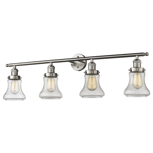 4 Light Bellmont 42In. Brushed Satin Nickel Bathroom Fixture With Seedy Glass