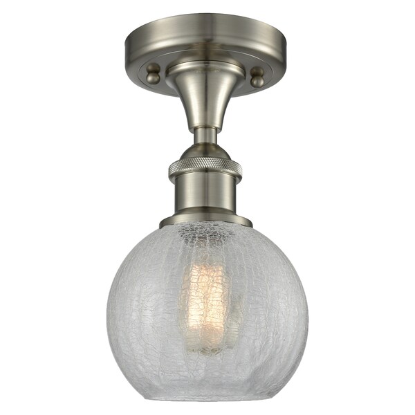 1 Light Athens 8In. Brushed Satin Nickel Semi-Flush Mount With Clear Crackle Globe Glass