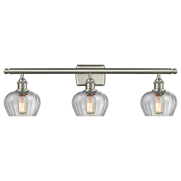 3 Light Fenton 26In. Brushed Satin Nickel Bathroom Fixture With Clear Fluted Glass