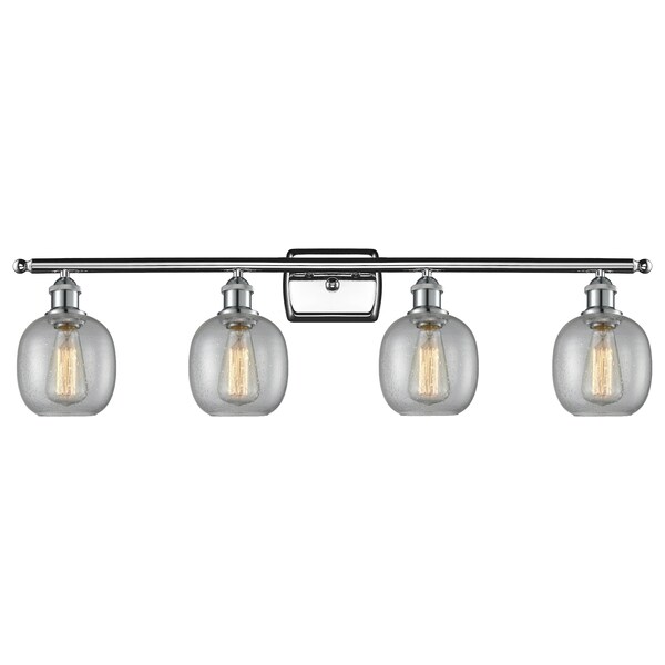 4 Light Belfastin. Polished Chrome Bathroom Fixture With Clear Seedy Glass