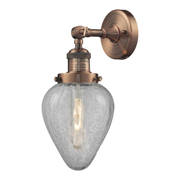 1 Light Adjustable Geneseo 6.5In. Antique Copper Sconce With Clear Crackle Glass
