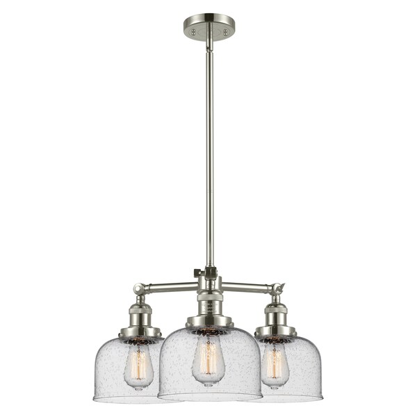 3 Light Adjustable Large Bell 22In. Polished Nickel Chandelier With Seedy Glass