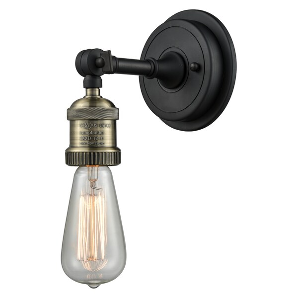 Bare Bulb 1-100 Watt 4.5 Inch Black Antique Brass Sconce With 5 Inch Backplate Solid Brass 180 Degree Adjustable Swivel With Engraved Cast Cup