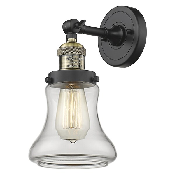 Bellmont 1-100 Watt 6.5 Inch Black Antique Brass Sconce With Clear Glass And Solid Brass 180 Degree Adjustable Swivel With Engraved Cast Cup