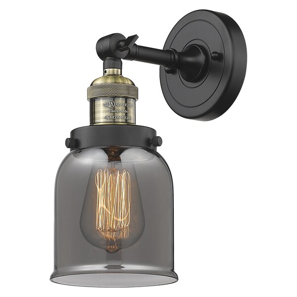 Small Bell 1-100 Watt 5 Inch Black Antique Brass Sconce With Smoked Glass And Solid Brass 180 Degree Adjustable Swivel With Engraved Cast Cup