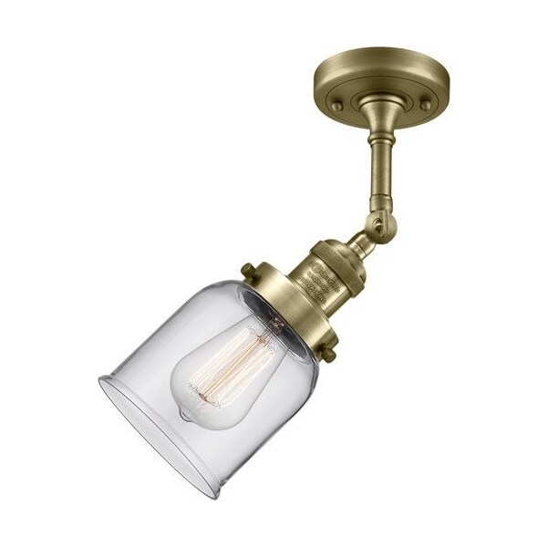 Small Bell 1-100 Watt 5 Inch Antique Brass Semi-Flush Mount With Clear Glass And Solid Brass 180 Degree Adjustable Swivel With Engraved Cast Cup