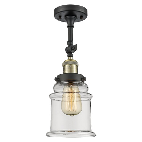 Canton 1-100 Watt 6.5 Inch Black Antique Brass Semi-Flush Mount With Clear Glass And Solid Brass 180 Degree Adjustable Swivel With Engraved Cast Cup