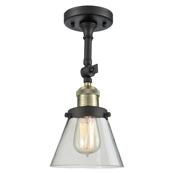 Small Cone 1-100 Watt 6 Inch Black Antique Brass Semi-Flush Mount With Clear Glass And Solid Brass 180 Degree Adjustable Swivel With Engraved Cast Cup