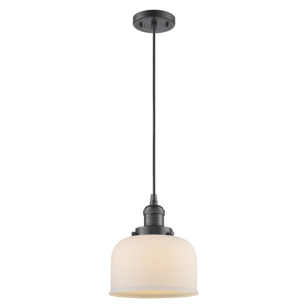 Large Bell Vintage Dimmable Led 8 Inch Oidimmable Led Rubbed Bronze Mini Pendant With Matte White Cased Glass