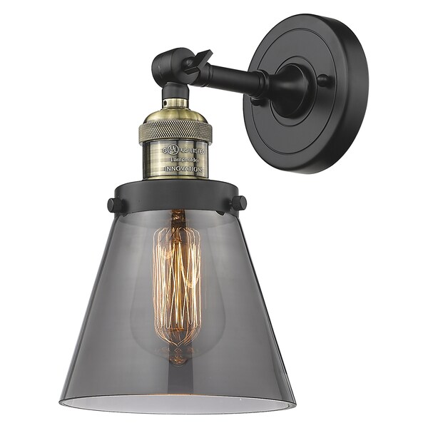 Small Cone Vintage Dimmable Led 6 Inch Black Antique Brass Sconce With Smoked Glass And Solid Brass 180 Degree Adjustable Swivel With Engraved Cast Cup
