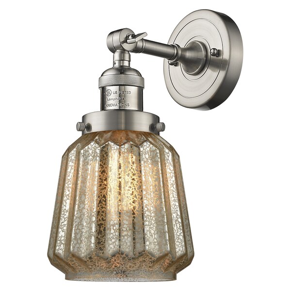 Chatham Vintage Dimmable Led 6 Inch Brushed Satin Nickel Sconce With Mercury Fluted Glass And Solid Brass 180 Degree Adjustable Swivel With Engraved Cast Cup