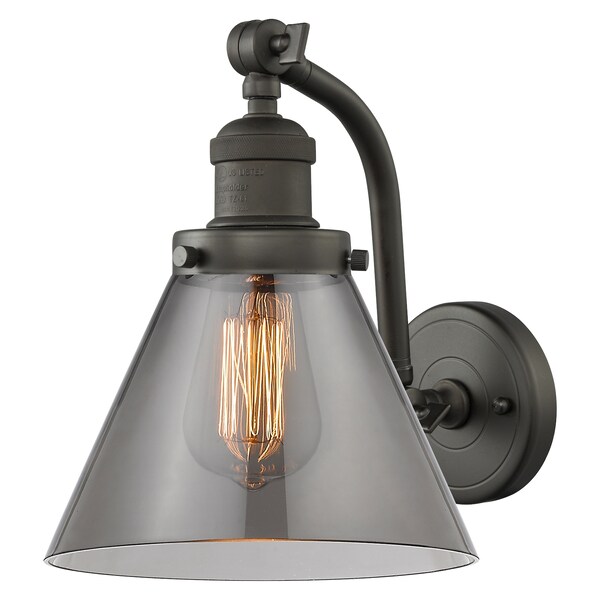 Large Cone Vintage Dimmable Led 8 Inch Oidimmable Led Rubbed Bronze Sconce With Smoked Glass And Solid Brass 180 Degree Adjustable Swivels