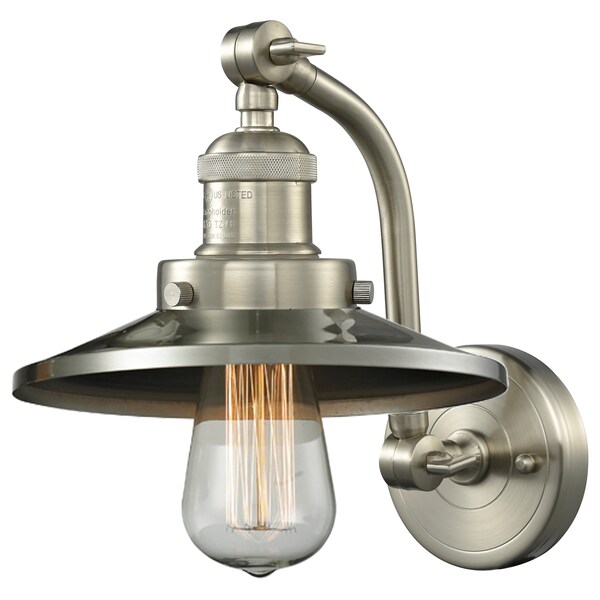Railroad Vintage Dimmable Led 5 Inch Brushed Satin Nickel Sconce With Brushed Satin Nickel Railroad Shades And Solid Brass 180 Degree Adjustable Swivels