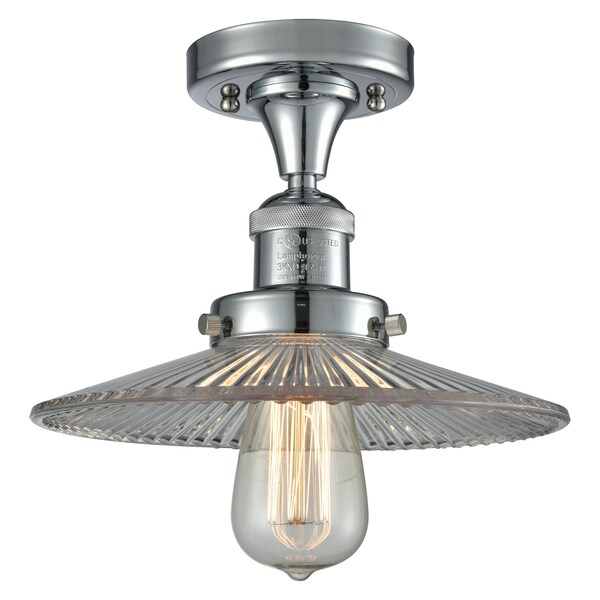 Halophane Vintage Dimmable Led 10 Inch Polished Chrome Semi-Flush Mount With Halophane Glass