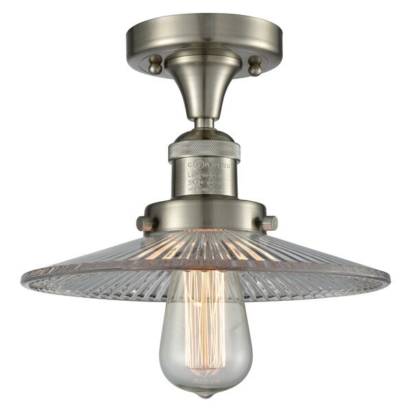 Halophane Vintage Dimmable Led 10 Inch Brushed Satin Nickel Semi-Flush Mount With Halophane Glass