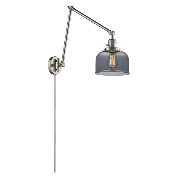 Large Bell 1-30/70/100 Watt 8 Inch Brushed Satin Nickel Swing Arm With Smoked Glass And Solid Brass 180 Degree Adjustable Swivels