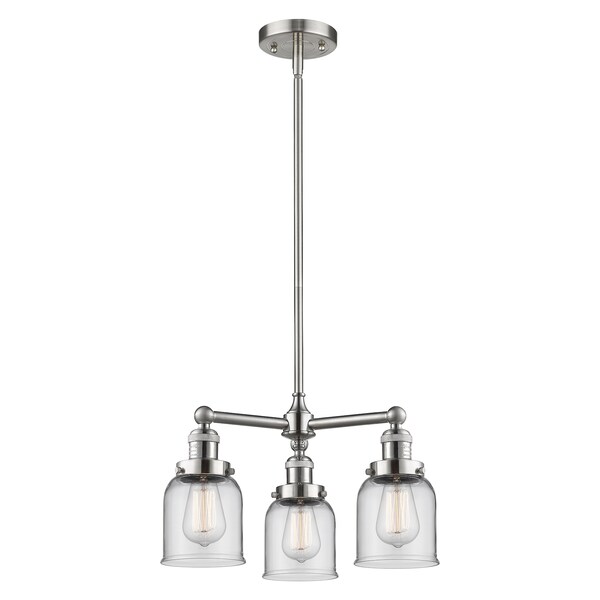 3 Light Adjustable Small Bell 19In. Brushed Satin Nickel Chandelier With Clear Glass