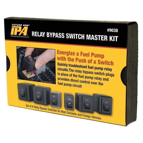Fuel Pump Relay Bypas Master Kit, Tool Type Fuel Pump Tester, Testing Application Fuel Pump Relay, Material Plastic, Number of Pieces 6, Features Actuates Fuel Pump when the Engine is not Running, Controls Fuel Pump Independent of Key-On/Key-Off Systems, Plugs in Place of Relay