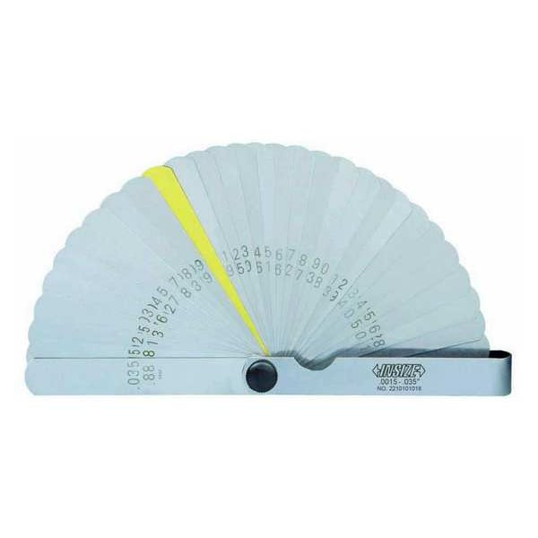 Feeler Gauge Set, Finish Uncoated, Blade Length 2 61/64 in, Blade Material Brass, Blade Style Short Blade, Dimension Type Inch, Included Certification Not Applicable, Maximum Thickness - Inch 0.035 in, Minimum Thickness - Inch 0.0015 in, Non-Marring No, Number of Feeler Blades 32, Thickness Range 0.0015 in to 0.035 in, Tolerance 0015 in to .035 in, Blade Width 0.512 in, Color Silver