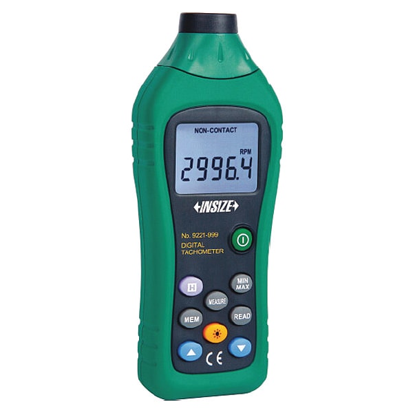 Non-Contact Digital Tachometer, RPM Accuracy +/-0.03 Percent, RPM Resolution 0.01 (50 to 99.99), 0.1(100 to 999.9), 1 (10,000 to 99,999), Includes Main Unit, Reflection Sticker, Features Automatic power off, Maximum and minimum modes, Digital Display Screen Type LED