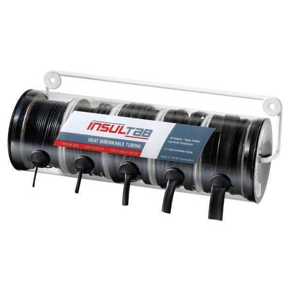 Heat Shrink Tubing Kit, Thin Wall, Material PVC, Flexible, Flame Retardant No, Adhesive Lined No, Temp. Range -4 Degrees F to 221 Degrees F, Shrink Ratio 2:1, Number of Pieces 5, Includes 1/16 in x 100 ft, 1/4 in x 25 ft, 1/8 in x 25 ft, 3/16 in x 25 ft, 3/8 in x 25 ft, Mini-Spool Pull-Pak, Color Black, Length Assorted, Shrink Tubing Properties UV Light Resistant, Package Style Reel, Kit Contents Multiple Sizes, Use With Wire Size 0.06 in to 0.37 in