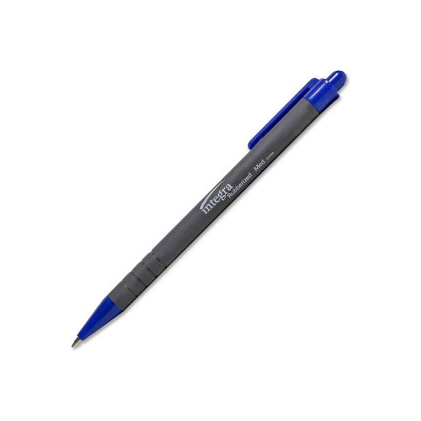 Integra ballpoint retractable pen, rubberized barrel, medium, blue ink, dozen retractable ballpoint pens feature a rubberized barrel with grip rings at base and a medium point. Barrel design provides comfort and control. Pocket clip and tip denote ink color. Ink is water-resistant. Rubberized barrel, pocket clip & water resistant ink.