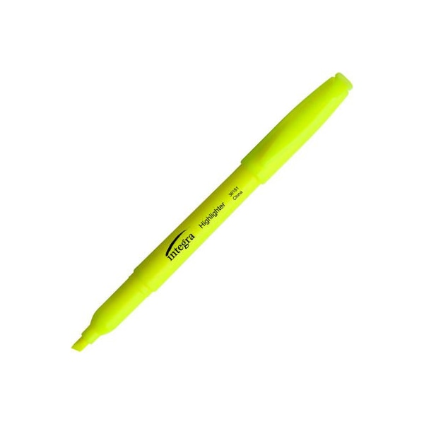 Integra pen style highlighter, chisel tip, fluorescent yellow ink, dozen pen-style highlighters feature fluorescent ink and a chisel tip. The chisel tip makes wide or narrow lines. Ink is quick-drying and odorless. Quick-drying ink & odorless.