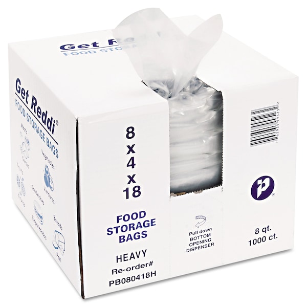 Food Bags, 2 gal, 8" x 4" x 18", Clear, PK1000