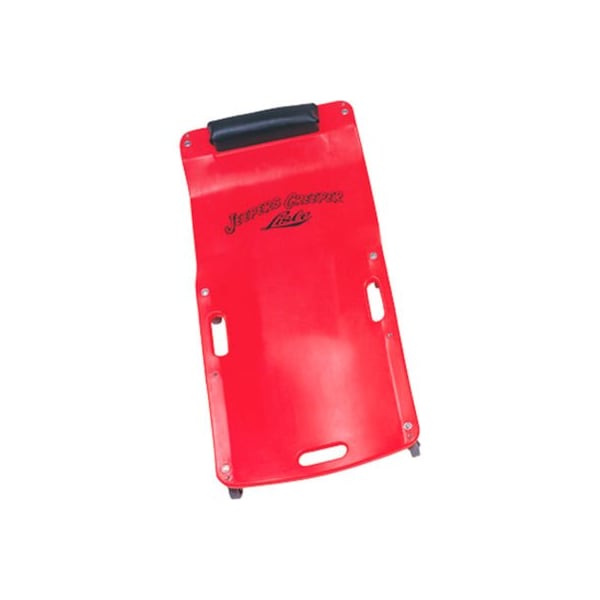 this body-fitting design was developed through testing on many body types to provide optimum comfort. Creeper body is 2" longer for a better fit. Urethane rollers are inserted into steel bushings which are molded into the creeper body. Provides added strength and easy roller replacement. Low profile, 7/8" floor clearance. Easy to clean surface is resistant to solvents, greases and fuels. Built-in threaded inserts allow easy addition of a light holder (93702) and tool tray (96562), sold separately. Dimensions: length 38", width 17 1/2", height 4".