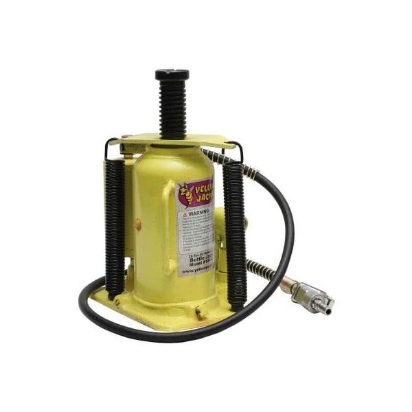 Tiger tool 20-ton air hydraulic bottle jack-yellowjackit - esc10446 20 ton air/manual bottle jack features a welded base and cylinder to assure strength and eliminate leaks- it has a 9 5/8" minimum height and a 18 3/4 maximum height-
