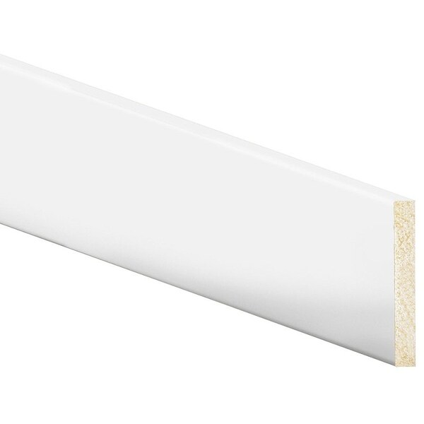 Modern Baseboard Moulding, 8 ft L, 4 in W, 12 in Thick, Polystyrene, Crystal White