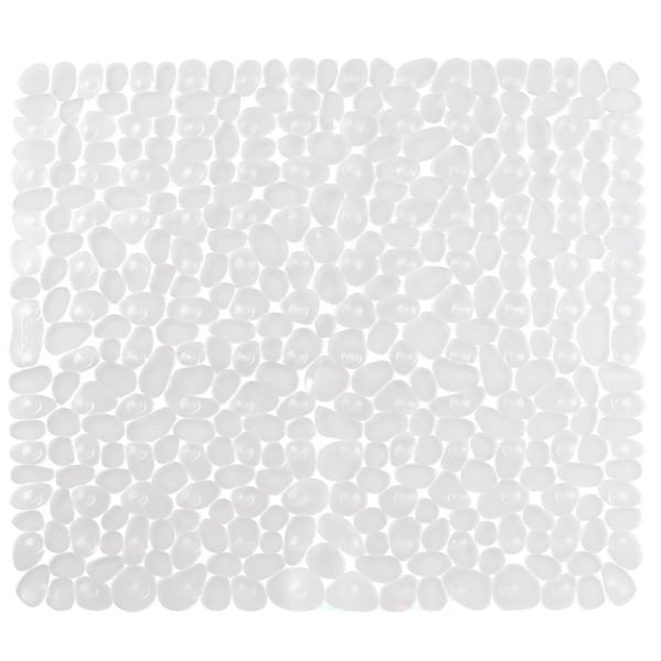 Give your feet something secure and cool to step on with the iDESIGN pebblz bath mat. This translucent, flexible shower mat gives the look of smooth and textured pebbles beneath your feet, giving your bathtub a look that hearkens back to nature and looks even better in the water. Adorning the bottom of the mat are numerous suction cups that stick to your bathtub to ensure a slip-free wash. Soft, pliable plastic construction cuts easily with scissors or a blade to provide an exact fit. With iDESIGN by iDESIGN, you can live simply every day.