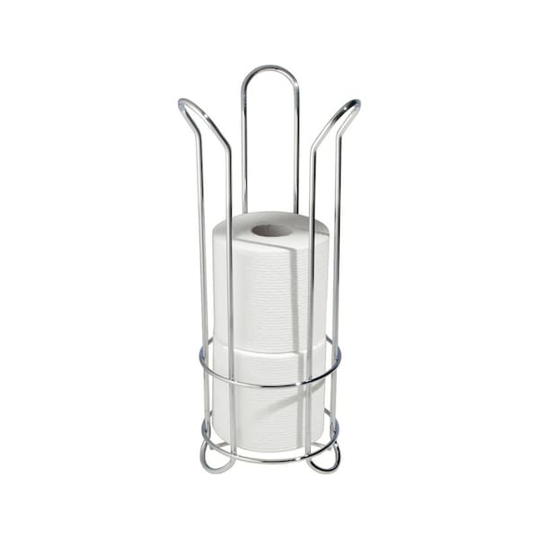 This toilet paper reserve saves valuable storage space in bathroom cabinets and linen closets by transferring extra toilet paper storage right where it is needed. Featuring durable steel construction and a beautiful chrome plated finish, this toilet tissue stand boasts a flared tulip design which makes changing toilet paper rolls fast and convenient.