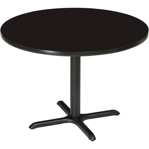 300 lbs. weight capacity. Low maintenance and easy to clean. Durable, particleboard laminate top is moisture and mold resistant. Give your guests a clean and modern place to relax, socialize, and eat their meals with the Interion Round Counter Height Restaurant Table. The 1-1/4in thick laminate tabletop is easy to clean and withstands daily use in places such as office breakrooms, school lunchrooms, or in restaurants. The table features a vinyl T-mold edge banding that prevents food, moisture, and mold from penetrating the core, while the base is stable and can be easily leveled on uneven floors. Some assembly required. 10-Year Limited Warranty.