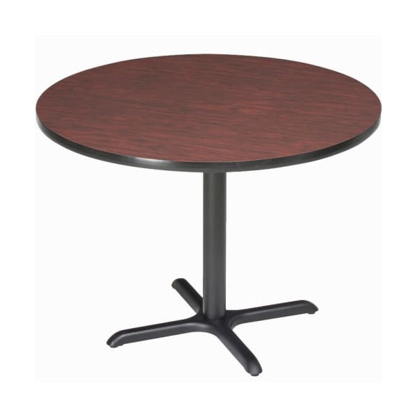 300 lbs. weight capacity. Low maintenance and easy to clean. Durable, particleboard laminate top is moisture and mold resistant. Give your guests a clean and modern place to relax, socialize, and eat their meals with the Interion Round Counter Height Restaurant Table. The 1-1/4in thick laminate tabletop is easy to clean and withstands daily use in places such as office breakrooms, school lunchrooms, or in restaurants. The table features a vinyl T-mold edge banding that prevents food, moisture, and mold from penetrating the core, while the base is stable and can be easily leveled on uneven floors. Some assembly required. 10-Year Limited Warranty.