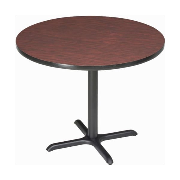 300 lbs. weight capacity. Low maintenance and easy to clean. Durable, particleboard laminate top is moisture and mold resistant. Give your guests a clean and modern place to relax, socialize, and eat their meals with the Interion Round Bar Height Restaurant Table. The 1-1/4in thick laminate tabletop is easy to clean and withstands daily use in places such as office breakrooms, school lunchrooms, or in restaurants. The table features a vinyl T-mold edge banding that prevents food, moisture, and mold from penetrating the core, while the base is stable and can be easily leveled on uneven floors. Some assembly required. 10-Year Limited Warranty.
