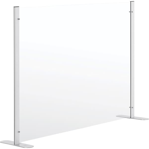 Clear, transparent finish allows for easy visibility. Quick set-up and breakdown. Freestanding. Provide personal protection for your employees and your patrons with the Interion Acrylic Cashier Shield. Its durable, acrylic material is easy to clean and allows for a piece of mind while completing transactions or communicating with customers. The aluminum uprights and steel base are attractive and ensure the shield stays in place. 3-Year Limited Warranty.