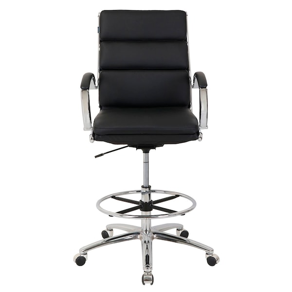 This Interion By Global Industrial contemporary leather upholstered stool provides a thick cushioned seat and back to offer you proper support throughout your work day. Chrome finish on the base and arms take this chair to the next level. Upholstered in an antimicrobial agent which protects the upholstery from bacteria, mold, and mildew that causes odors and product degradation.Padded arm rests offer maximum comfort. Pneumatic height adjustment raises seat from 25-1/4in - 32-1/4in. 300 lb weight capacity. Limited Lifetime Warranty. BIFMA and Greenguard Certified.