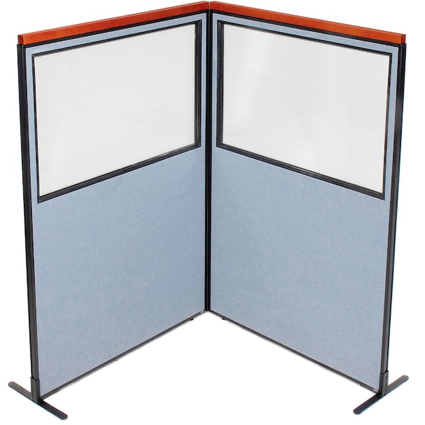 Interion Deluxe Freestanding 2-Panel Corner Divider w/Partial Window 48-1/4inW x 73-1/2inH Blue