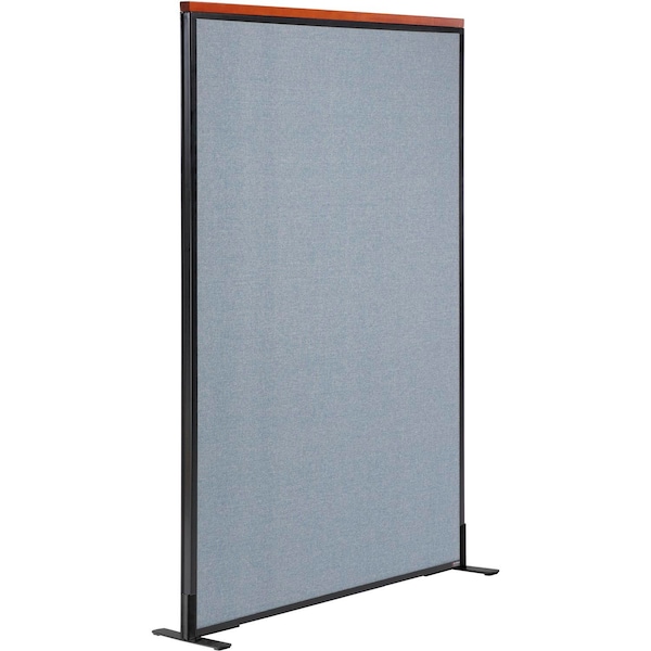 36-1/4inW x 61-1/2inH Blue Deluxe Freestanding Office Partition Panel. Deluxe Freestanding Office Partitions provide versatile privacy for cubicles, reception spaces, call centers and more. Panels feature a wood accent which attaches to top of partition, trimming panels with a Cherry finish. Accent cap measures 1-1/2inH x 1-3/4inD. Panels are made using 1-3/4in thick fabric upholstered panel with an MDF frame and honeycomb core covered with heavy tackable liner for structural strength. Panel trim is finished with self-extinguishing extruded polymer for optimum safety and rigidity. Panels are flame retardant to meet the California 117 flammability standard. Steel T-legs ensure reliable freestanding stability, and make panels easy to adjust and rearrange. 1 Year Limited Warranty. Note: The wood top cap is a non-weight bearing accent piece for decorative purpose only. Do not hook or hang any item on top of the panel for safety measures.