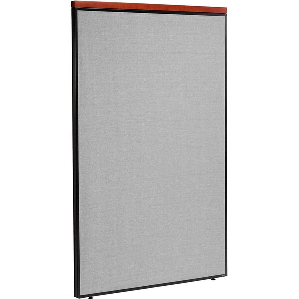 Interion By Global Industrial deluxe partition panels feature a wood accent at the top of the panel. Measuring 48-1/4 inches, wood cap attaches to top of partition, trimming panels with a Cherry finish. Cap measures 1-1/2inH x 1-3/4inD. Office partition panels can be used to wrap around existing desks or new office furniture to create private office spaces, cubicles, reception stations and call centers for any office environment. Room partition panel is flame retardant to meet the California 117 flammability standard. 1-3/4in thick fabric upholstered panel features an interior engineered wood MDF frame and honeycomb core covered with heavy tackable liner for structural strength and support. Panel trim is finished with self-extinguishing extruded polymer that offers optimum safety and rigidity. Partition includes adjustable leveling feet that are ideal for uneven surfaces. Purchase Steel Connectors to join multiple partitions and create various cubicle configurations sold separately. 1 Year Limited Warranty. Note: The wood top cap is a non-weight bearing accent piece for decorative purpose only. Do not hook or hang any item on top of the panel for safety measures.