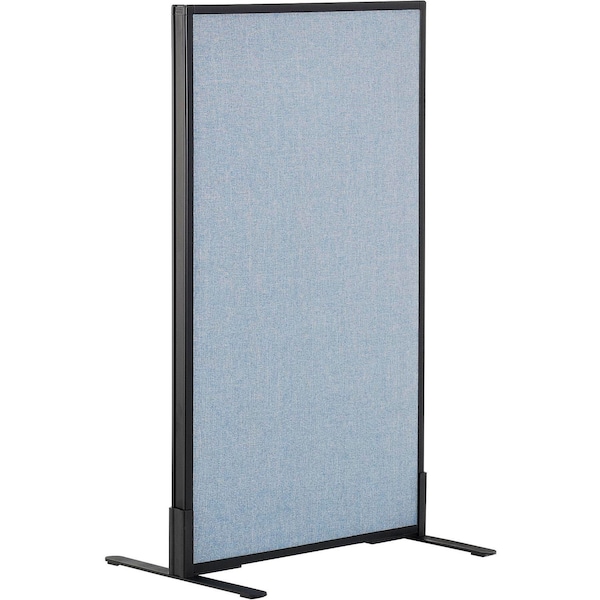 Blue Freestanding Office Partition Panel 24-1/4inW x 42inH. Freestanding Office Partitions provide versatile privacy for cubicles, reception spaces, call centers and more. Panels are made using 1-3/4in thick fabric upholstered panel with an MDF frame and honeycomb core covered with heavy tackable liner for structural strength. Panel trim is finished with self-extinguishing extruded polymer for optimum safety and rigidity. Panels are flame retardant to meet the California 117 flammability standard. Steel T-legs ensure reliable freestanding stability, and make panels easy to adjust and rearrange. Partitions measure 24-1/4inW X 43-1/2inH. 1 Year Limited Warranty.