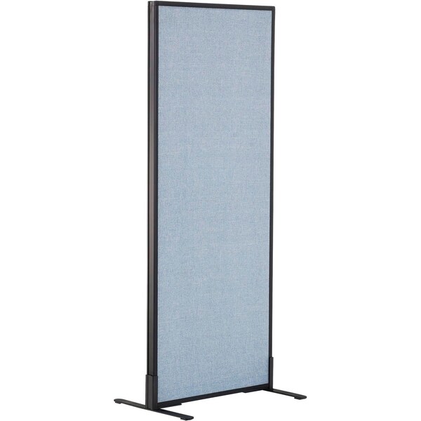 Blue Freestanding Office Partition Panel 24-1/4inW x 60inH. Freestanding Office Partitions provide versatile privacy for cubicles, reception spaces, call centers and more. Panels are made using 1-3/4in thick fabric upholstered panel with an MDF frame and honeycomb core covered with heavy tackable liner for structural strength. Panel trim is finished with self-extinguishing extruded polymer for optimum safety and rigidity. Panels are flame retardant to meet the California 117 flammability standard. Steel T-legs ensure reliable freestanding stability, and make panels easy to adjust and rearrange. Partitions measure 24-1/4inW X 61-1/2inH. 1 Year Limited Warranty.